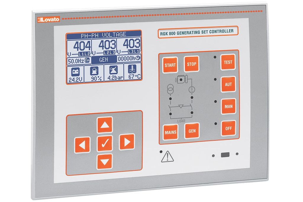 Контроллер RGK800 был спроектирован с учетом всех последних достижений науки и техники для применения на генераторных установках с функцией контроля напряжения в сети электроснабжения. Устройство имеет компактные размеры и совмещает в себе современный дизайн с удобством монтажа и возможностью подключения модулей расширения серии EXP. Графический ЖК-дисплей обладает понятным и интуитивным интерфейсом. <br> <br> <p class="one_chars_item_title_element">Схема элементов управления контролера Lovato RGK800</p> <p style="text-align: center;"> <img width="1024" alt="Shema_Lovato_RGK800.png" src="/upload/medialibrary/bfb/bfbbfdb1d8133645344979c7d04d38ac.png" height="490" title="Схема элементов управления контролера Lovato RGK800"> </p> <br><p class="one_chars_item_title_element"> Основные характеристики </p> <ul> <li>управление ДГУ с функцией автоматического управления переключением СЕТЬ/ДГУ</li> <li> графический ЖК-дисплей разрешением 128х80 пикс., с подсветкой, с 4-мя уровнями серого цвета</li> <li> 13 функциональных кнопок и кнопок настройки</li> <li> встроенный зуммер (отключаемый);</li> <li> 10 светодиодных индикаторов для отображения режима работы и технического состояния ДГУ</li> <li> многоязычный (включая русский язык) интерфейс управления</li> <li> шина расширения с 3-мя разъмами для подключения модулей расширения серии EXP</li> <li> интерфейс связи RS232, RS485, USB, Ethernet, Profibus, GSM/GPRS</li> <li> дополнительные дискретные входы/выходы, статические или релейные выходы</li> <li> аналоговые входы/выходы для датчика температуры PT100, тока, напряжения</li> <li> расширенные программируемые функции для входов/выходов</li> <li> управление 4-мя альтернативными настройками, выбор которых осуществляется с помощью переключателя</li> <li> встроенная в ПЛК (Программируемый Логический Контроллер) логика с пороговыми значениями, счетчиками, аварийной сигнализацией и тех. состояниями</li> <li> аварийная сигнализация полностью настраиваемая пользователем</li> <li> высокая точность измерений TRMS</li> <li> вход измерения напряжения сети "3 фазы + нейтраль"</li> <li> вход измерения напряжения генератора ДГУ "3 фазы + нейтраль"</li> <li> вход измерения токов нагрузки "3 фазы + нейтраль или земля"</li> <li> электропитание от аккумуляторной батареи 12-24 В пост. тока</li> <li> внешний оптический вход для программирования: гальванически развязанный, высокоскоростной, IP65, совместимый с USB и WiFi</li> <li> 4 аналоговых входа для подключения резитивных датчиков:</li> <li> давления масла</li> <li> температуры охлаждающей жидкости</li> <li> уровня топлива в баке</li> <li> программируемый</li> <li> 9 дискретных входов:</li> <li> 8 программируемых, отрицательных</li> <li> 1 для кнопки экстренного останова, положительный</li> <li> 10 дискретных выходов:</li> <li> 6 защищенных положительных статических выходов</li> <li> 3 релейных выхода</li> <li> 1 импульсный статический выход</li> <li> вход pick-up и W для считывания частоты вращения двигателя</li> <li> интерфейс CAN (J.1939) для двигателей с ЭБУ</li> <li> часы реального времени с энергосберегающим режимом</li> <li> память на 250 событий</li> <li> поддержка внешних аварийных сигналов и внешних устройств.</li> </ul> |
