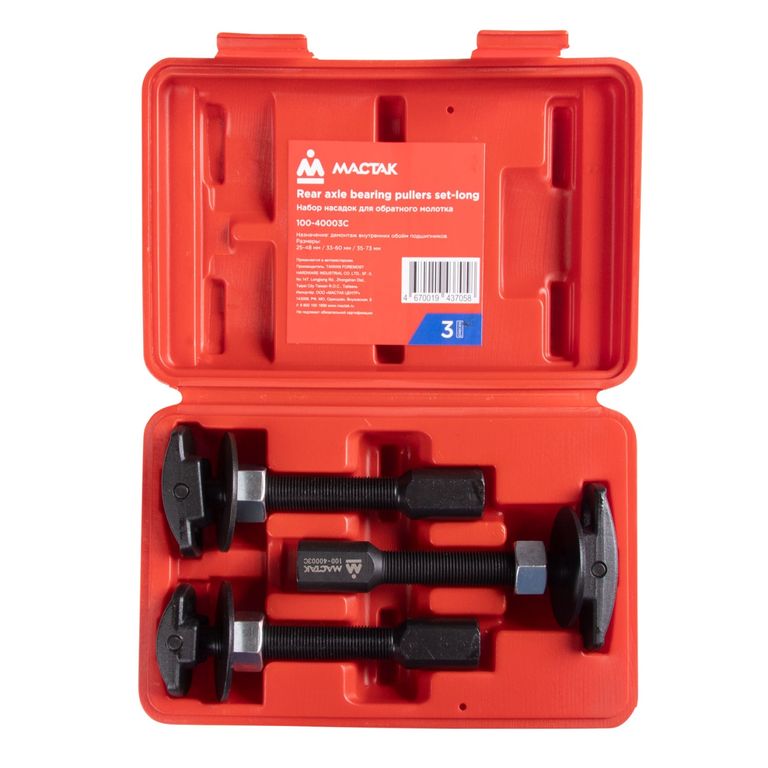 Набор насадок для обратного молотка, кейс, 3 предмета МАСТАК 100-40003C