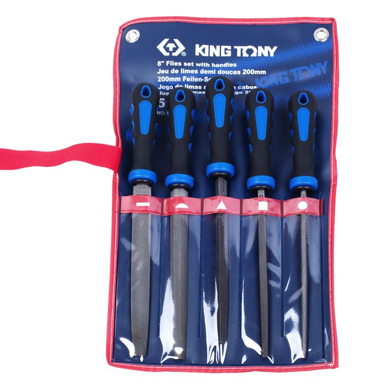 Набор напильников 200 мм, двухкомпонентные рукоятки, 5 предметов KING TONY 1005GQ