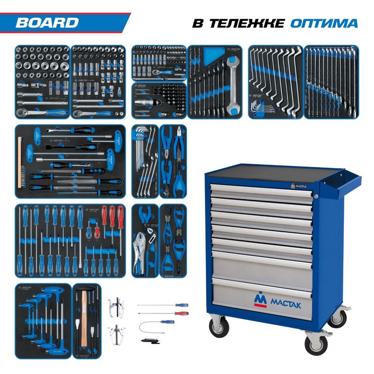 Набор инструментов 325 предметов, "BOARD", в синей тележке KING TONY 934-325AMB