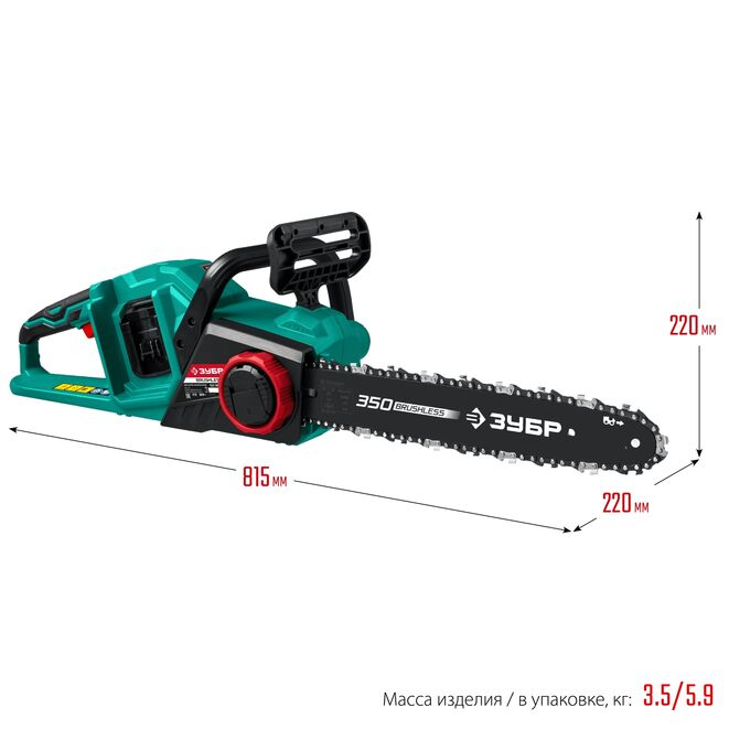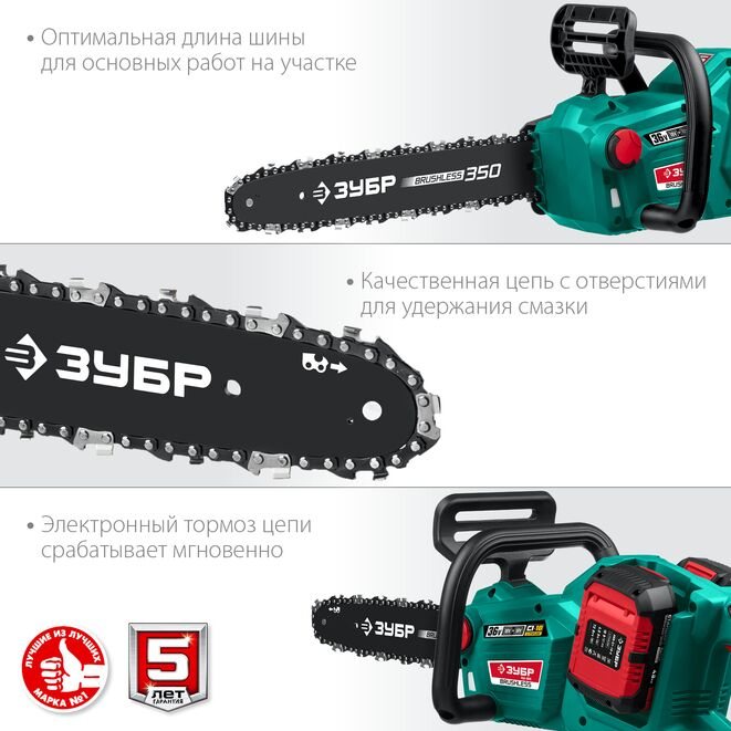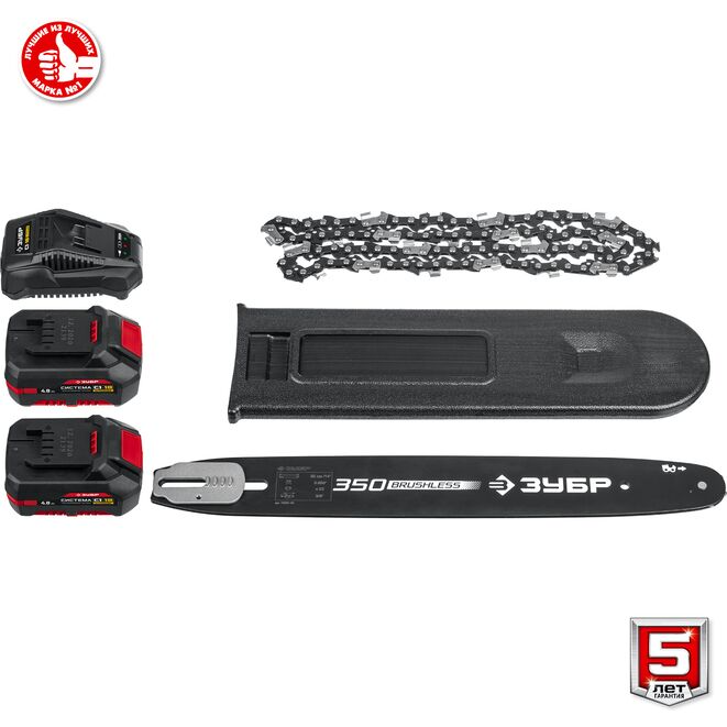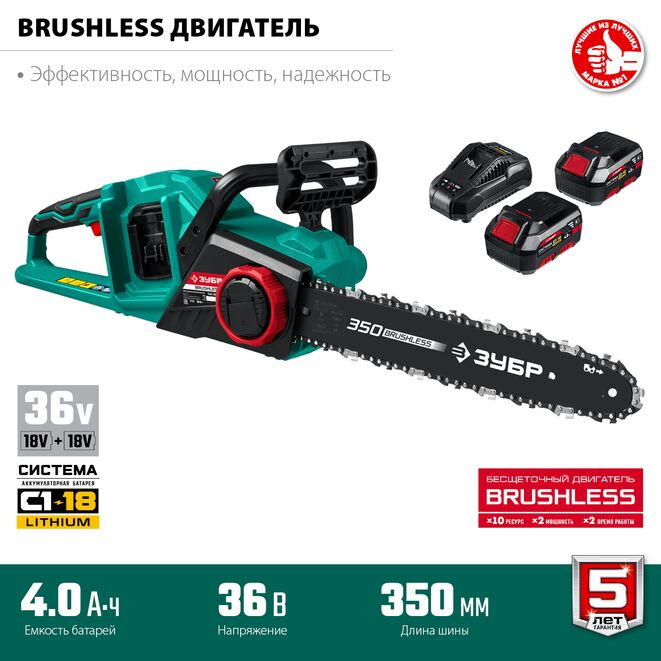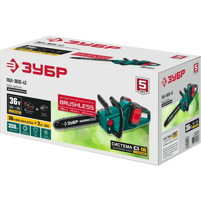 Бесщеточная цепная пила ЗУБР 2x18 В, 4 А*ч (ПЦЛ-3635-42)