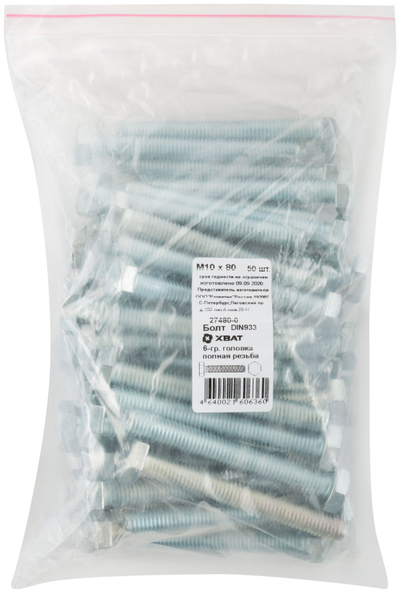 Купить Болт оц. М10 х 80 п/р din933, уп. 50 шт. ХВАТ, 27480-0 с доставкой во Владимирской области и России в компании «ВПГ».