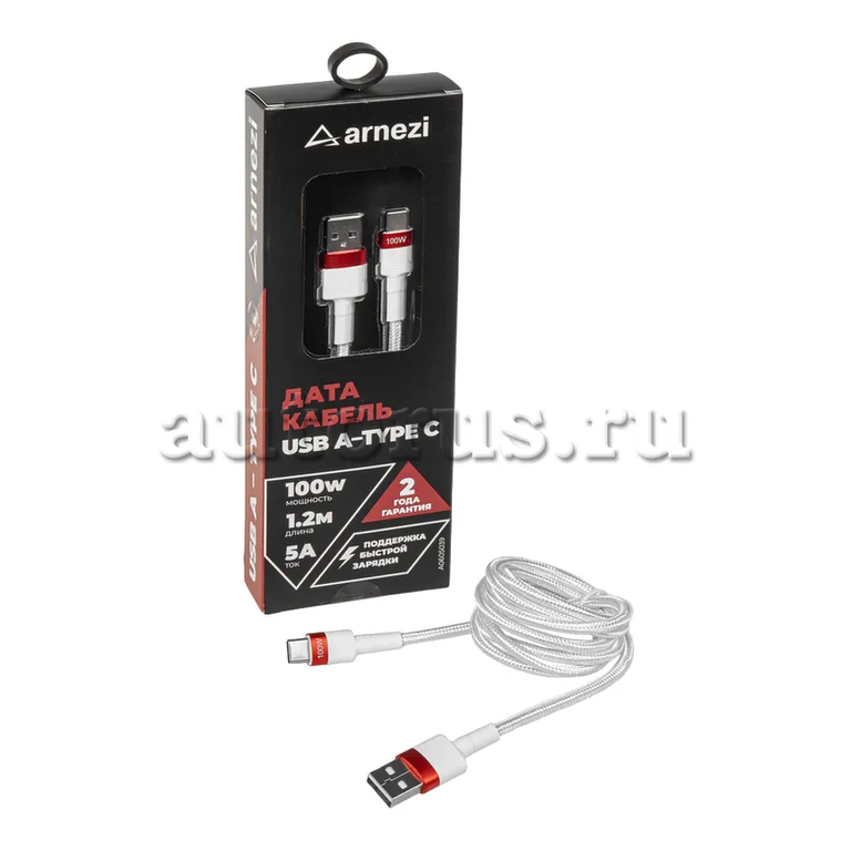 Дата-кабель Usb A - Type C (1.2м, 5A, 100W) быстрая зарядка, в оплетке ARNEZI A0605039