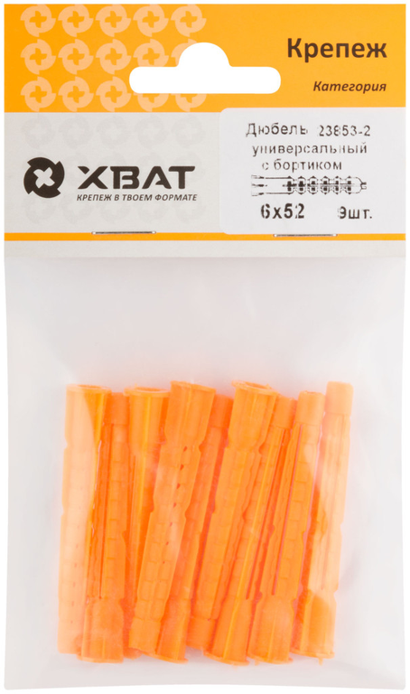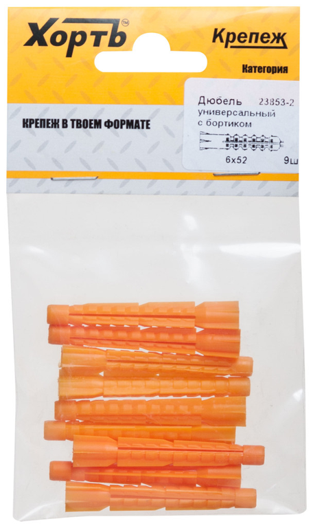 Дюбель универсальный с бортиком (u) 6 х 52, 9шт. ХВАТ 23853-2