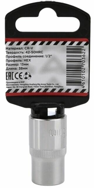 Головка 1/2" 6-и гр. 13 мм L=38 мм, ARNEZI R0300013