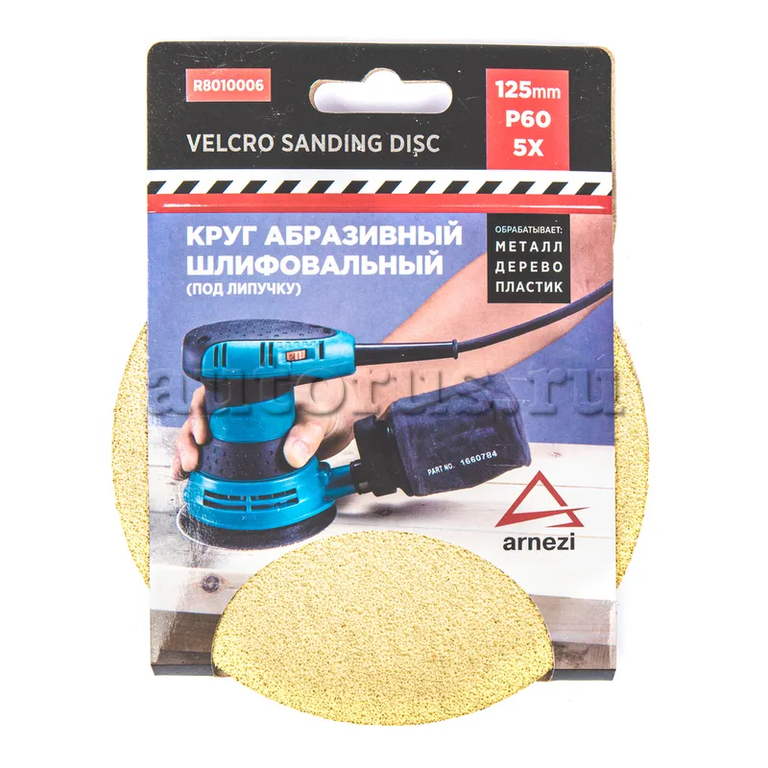 Круг абразивный (шлифовальный) d=125 мм P60 под липучку (5шт) ARNEZI R8010006