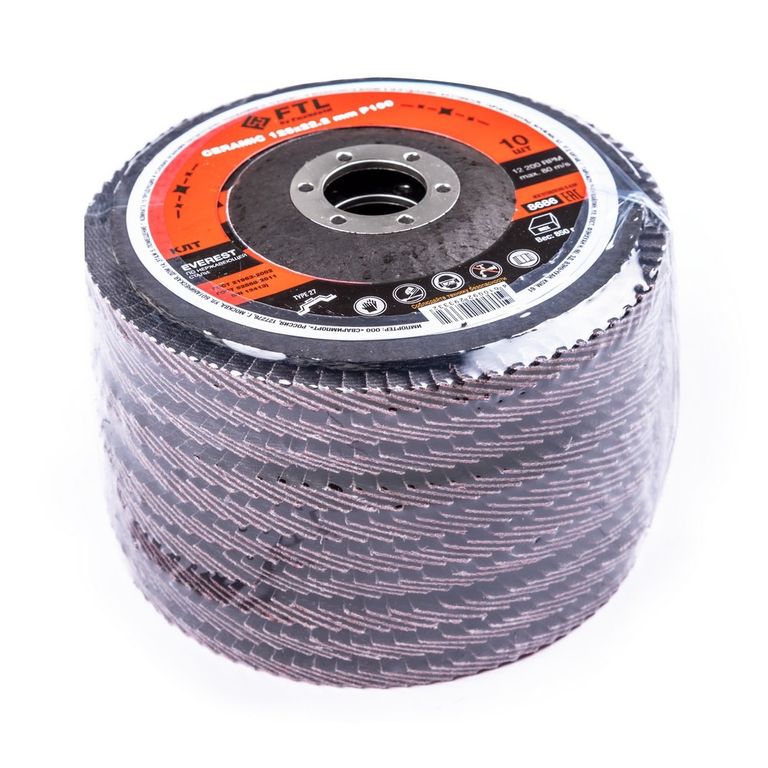Купить Круг лепестковый с керамическим абразивом для шлифования по нержавеющей стали FTL Everest 27 125 х 22,2 мм P100, Ferrline, 8686 с доставкой во Владимирской области и России в компании «ВПГ».