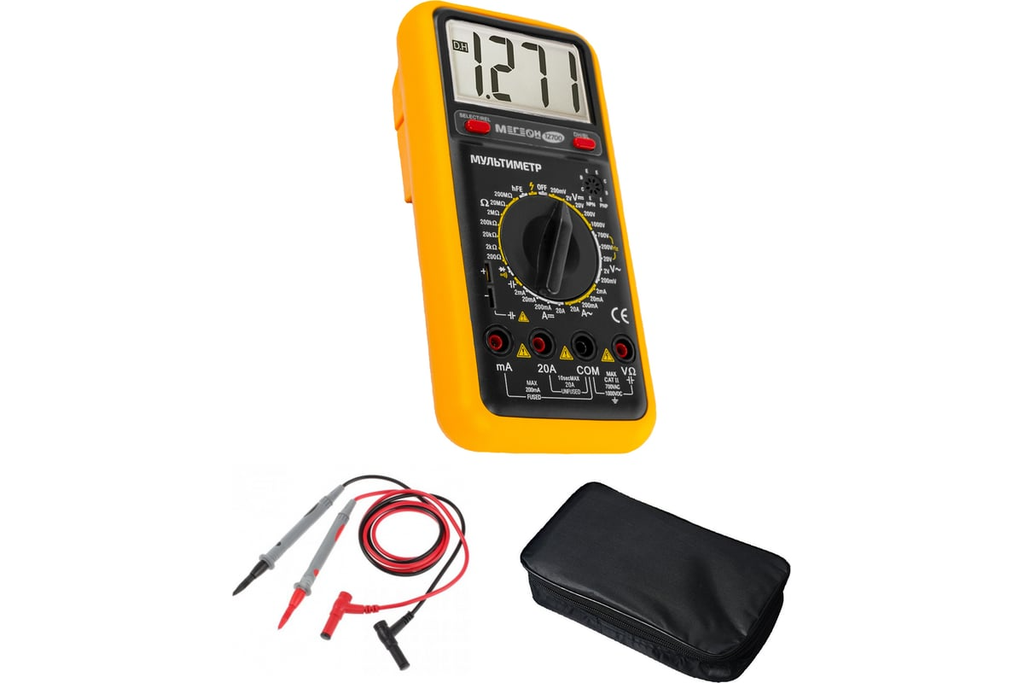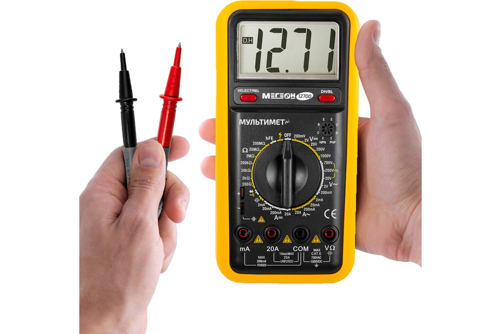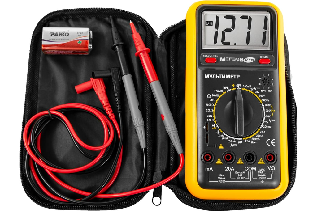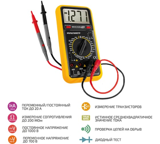 Мультиметр используется для измерения напряжения, тока, емкости, сопротивления, а также для тестирования транзисторов и диодов. Прибор поддерживает функцию удержания полученных показаний и автоматически выключается в случае длительного простоя. Разрядность шкалы мультиметра составляет 2000 отсчетов.