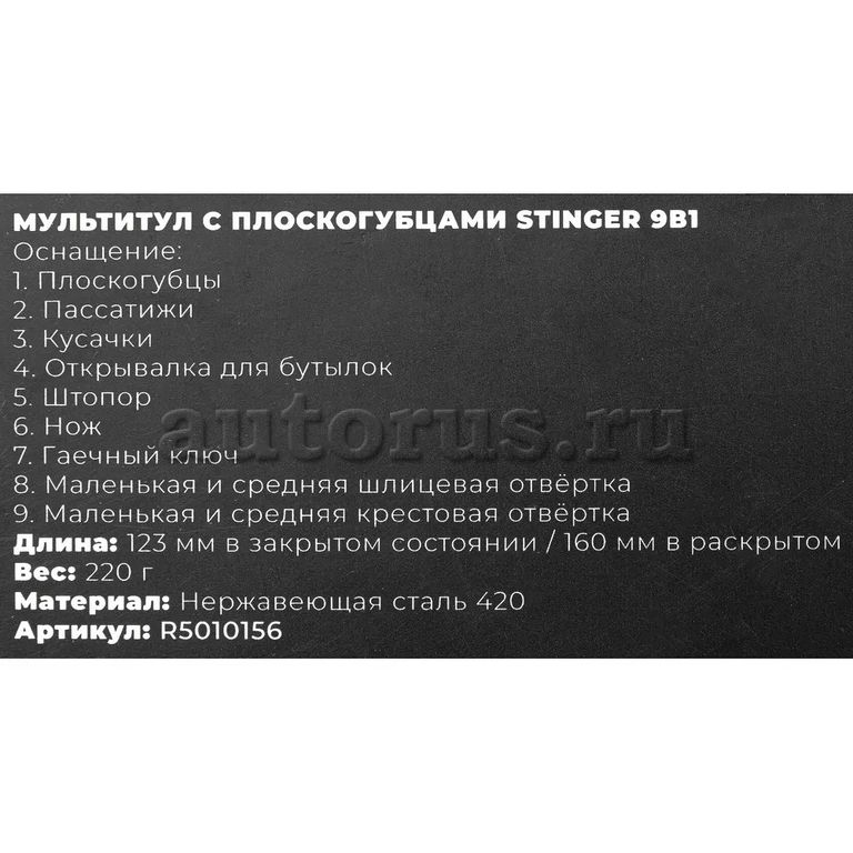 Купить Мультитул с плоскогубцами Stinger 9в1 ARNEZI R5010156 с доставкой во Владимирской области и России в компании «ВПГ».