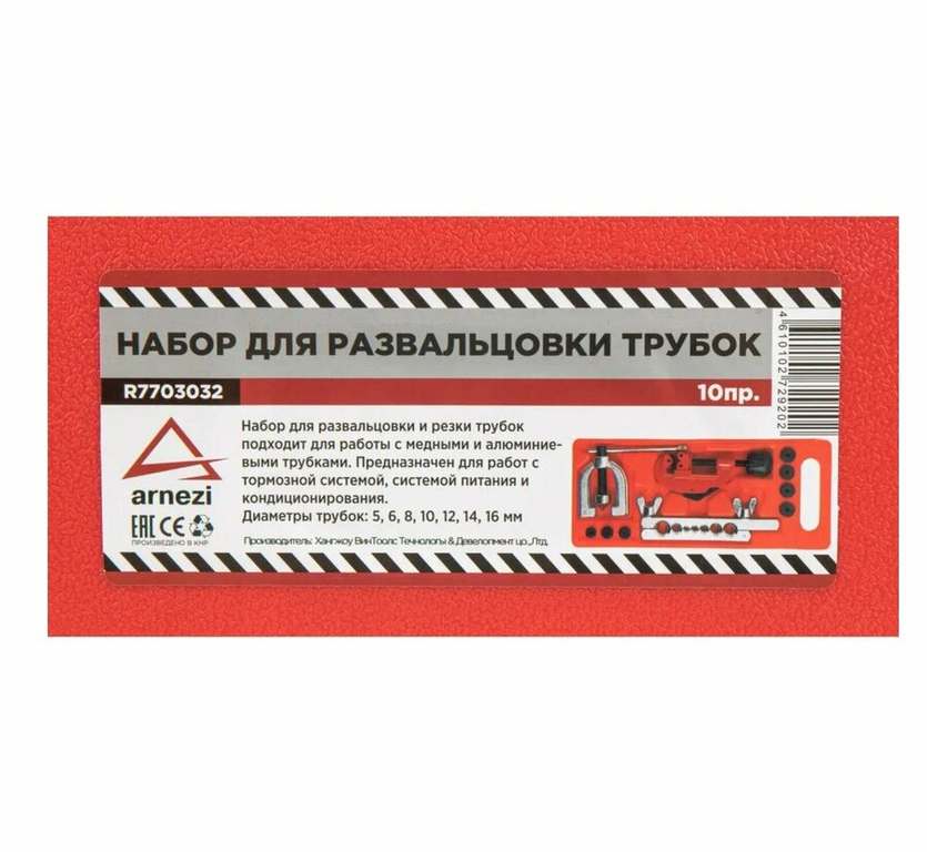 Набор для развальцовки тормозных трубок с труборезом 10пр. ARNEZI R7703032