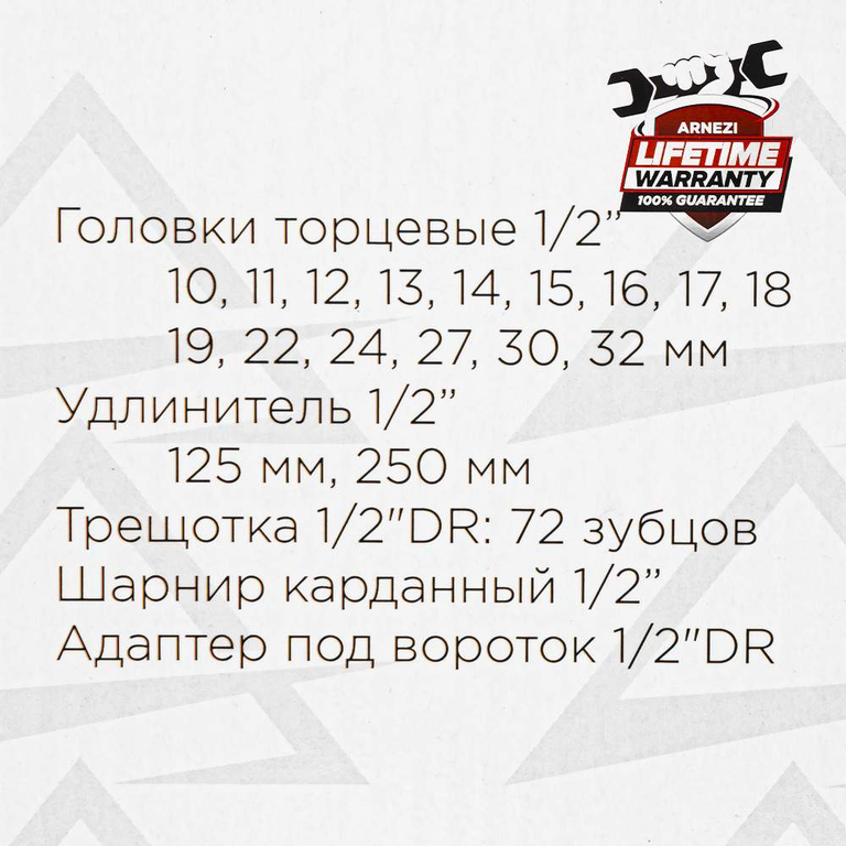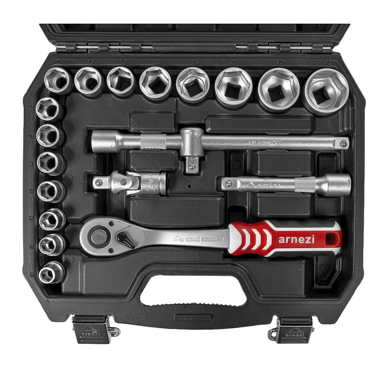 Набор инструментов 20 пр. 1/2"DR ARNEZI R0900020 для автомобиля предназначен как для профессионального использования, так и для автолюбителей, обеспечивая качественное и удобное обслуживание автомобиля.