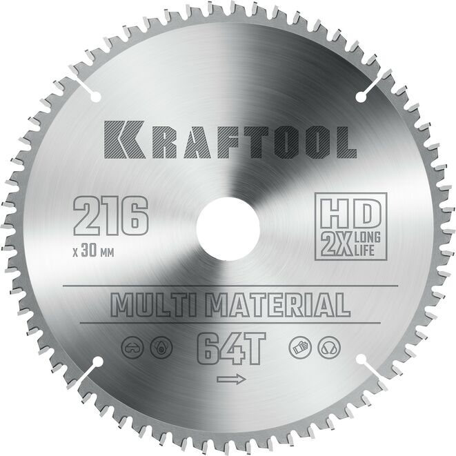 Пильный диск по алюминию KRAFTOOL Multi material 216x30 мм, 64Т (36953-216-30)