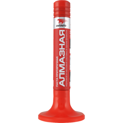 Паста притирочная АЛМАЗНАЯ кирпичного цвета, содержит абразив, приближенный по твердости к алмазу. Применяется для дизельных, а также деталей с высокой твёрдостью. Уникальный состав пасты 2 в 1 (черновой и чистовой) является функциональным преимуществом. Черновой состав притирки — крупнозернистая паста с размером зерна 80 мкм — подготавливает поверхность к следующему этапу микрошлифования.
