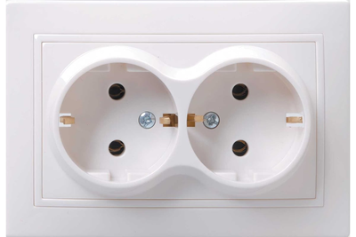Розетка двойная встраиваемая IEK Кварта РС12-3-КБ, с заземлением, 16 А, 250 В, IP20, белая ERK24-K01-16-DM