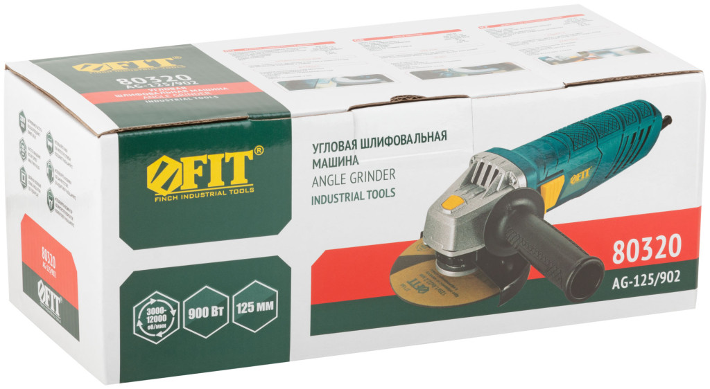Купить Шлифмашина угловая 900 Вт; 3000-12000 об/мин; КлК 125 мм; мал.; регулир. оборотов, короб FIT, 80320 с доставкой во Владимирской области и России в компании «ВПГ».