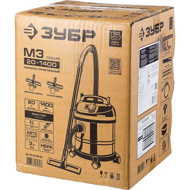 Купить Строительный пылесос ЗУБР МАСТЕР М3-20 ПУ-20-1400 М3 с доставкой во Владимирской области и России в компании «ВПГ».