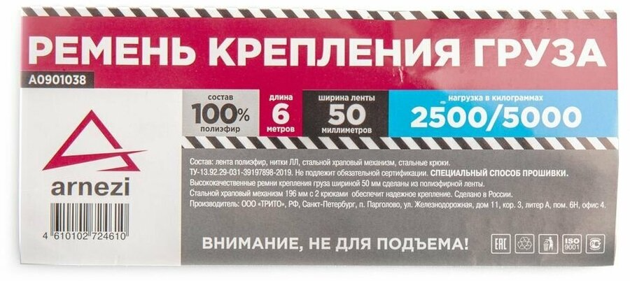 Стяжка груза 6 м x50 мм ПОЛИЭФИР, 2500/5000 кг ARNEZI A0901038