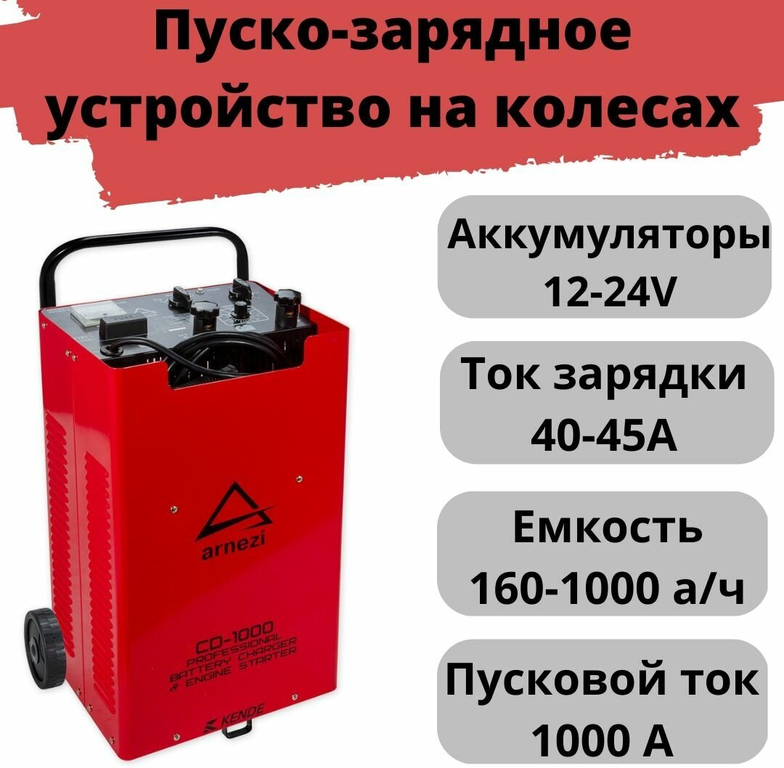 Зарядно-пусковое устройство CD-1000 (12/24В, 40-45А, акб 160-1000Ач, пуск 1000А) ARNEZI R7990213